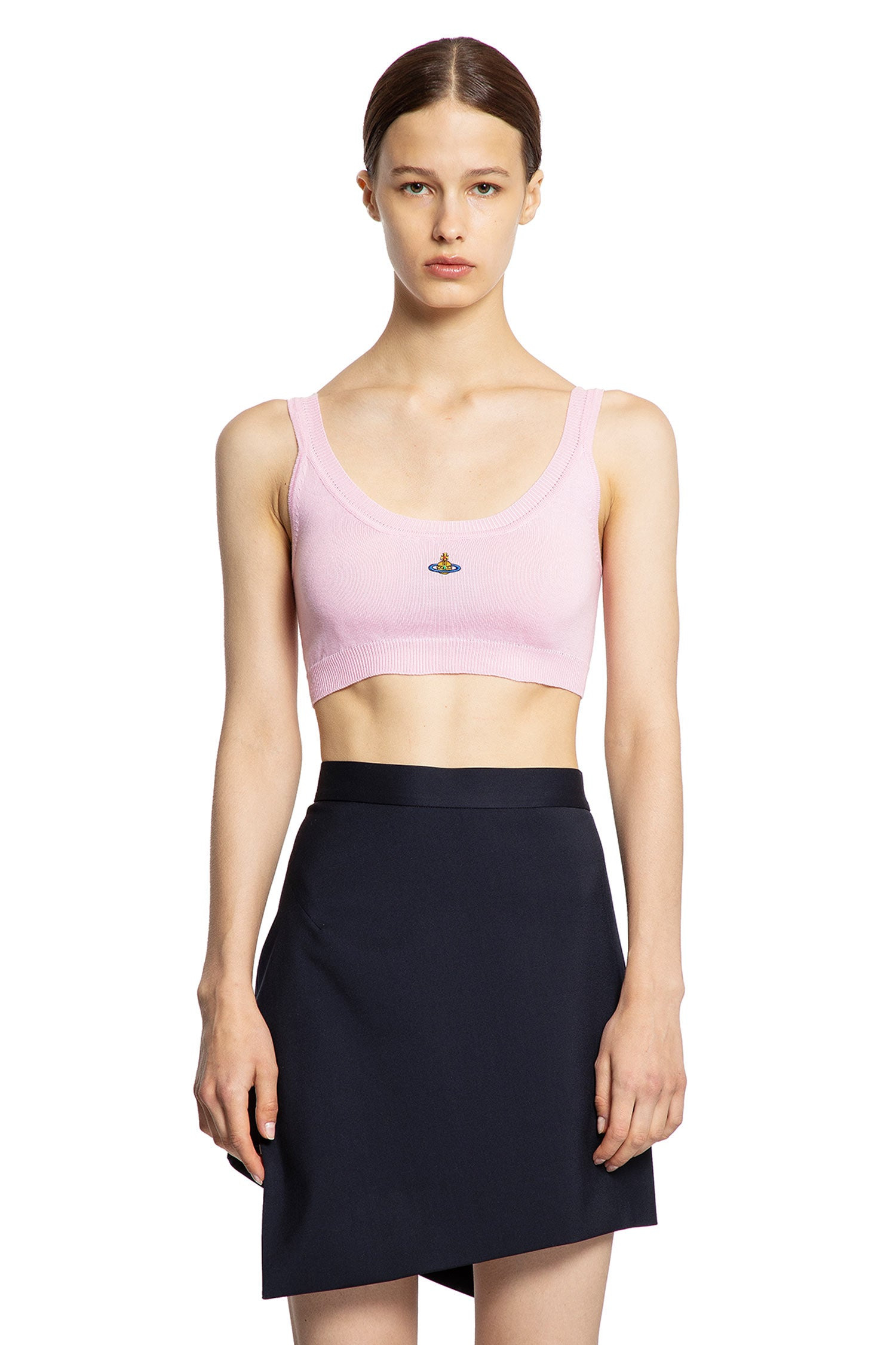 DESCRIPTION - Pink - Lightweight cotton knit - Scoop neck - Front signature orb embroidery - Sleeveless - Cropped ribbed hem - Fitted DETAILS - Made in: Italy - Composition: 100% Cotton - Model code: 1803003ZY001V G401 - Item ID: 9719301734742 SIZE & FIT Model wears size S Model Height 178 cm Bust 84 cm Waist 60 cm Hips 88 cm