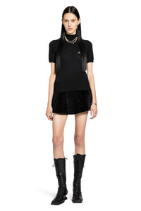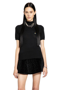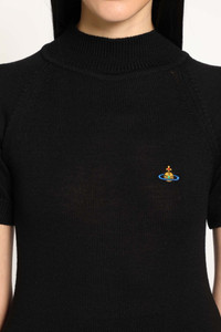 DESCRIPTION - Black - Soft wool knit - Chest signature orb embroidery - Short raglan sleeves - Ribbed hem and cuffs - Straight hem - Fitted DETAILS - Made in: Italy - Composition: 100% Merino Wool - Model code: 18030034Y002M N401 - Item ID: 9828523409750 SIZE & FIT Model wears size S Model Height 177 cm Bust 76 cm Waist 58 cm Hips 86 cm