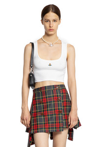 DESCRIPTION - White - Lightweight stretch rib cotton jersey - Scoop neck - Front signature orb embroidery - Sleeveless - Racer back - Cropped hem - Fitted DETAILS - Made in: Italy - Composition: 95% Cotton 5% Elastane - Model code: 1G010011J009C A401 - Item ID: 9719301996886 SIZE & FIT Model wears size S Model Height 180 cm Bust 80 cm Waist 59 cm Hips 89 cm