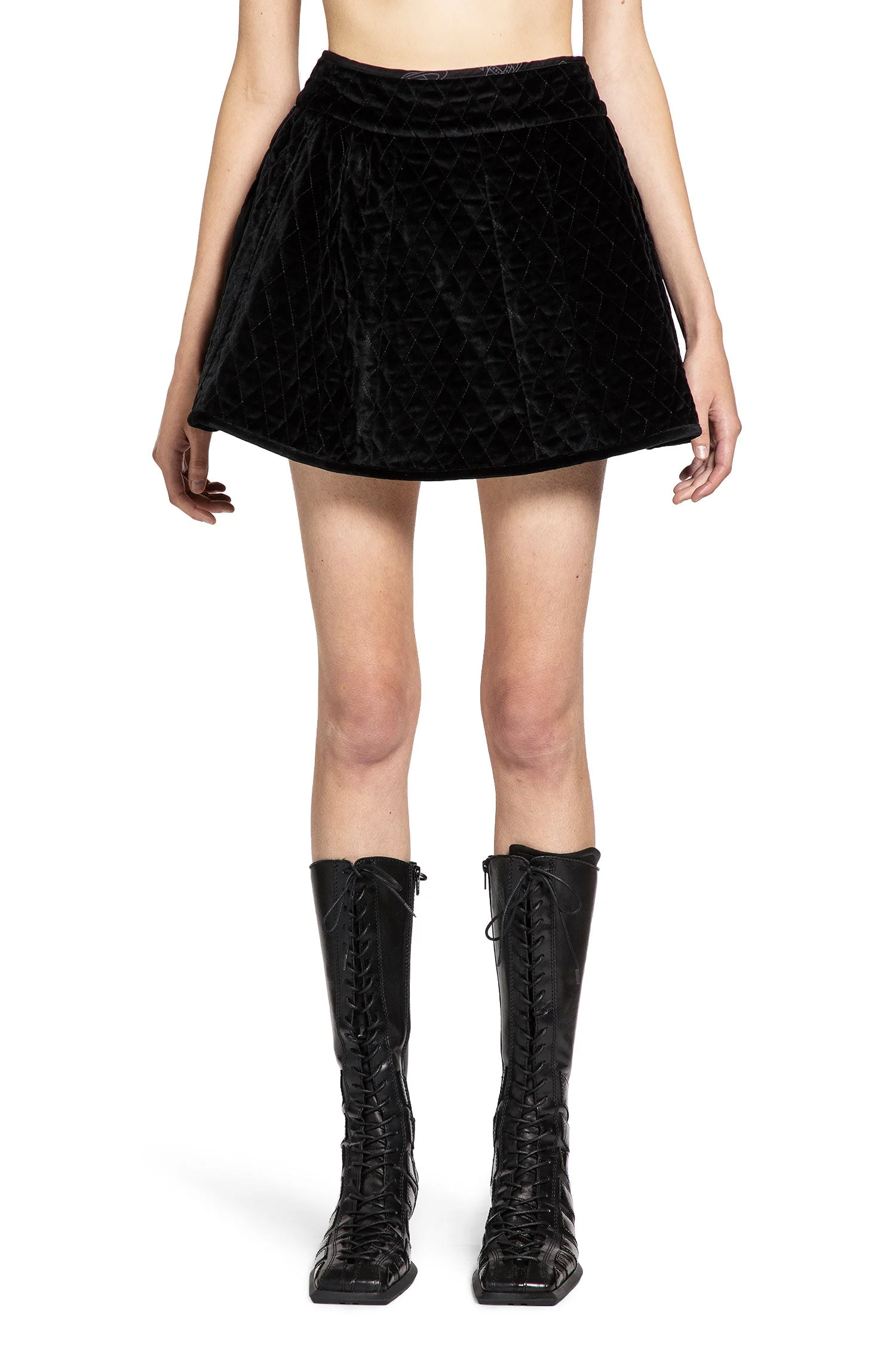 DESCRIPTION - Black - Quilted cotton velvet - Ruffled - High-waisted - Back button closure - Flared cut DETAILS - Made in: Italy - Composition: 100% Cotton - Model code: 1K01002GW00WX N401 - Item ID: 9828523540822 SIZE & FIT Model wears size 38 Model Height 177 cm Bust 76 cm Waist 58 cm Hips 86 cm
