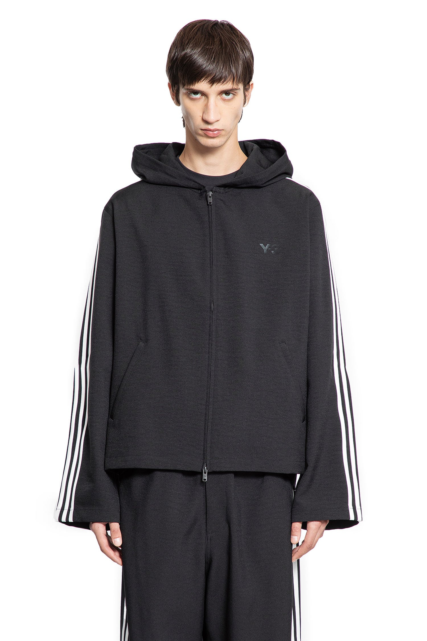 DESCRIPTION - Black - Polyester jersey - Fixed hood - Zip closure - Chest logo print - Side pockets - Dropped shoulders - Side signature 3-stripes - Straight hem - Boxy fit DETAILS - Made in: China - Composition: 100% Polyester - Model code: JW7354 - Item ID: 9744397435222