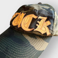 RARE! Chrome Hearts Fuck Leather Patch Camo Trucker Hat