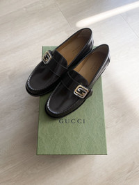 STEAL! Gucci Logo Plague Leather Loafers