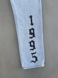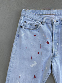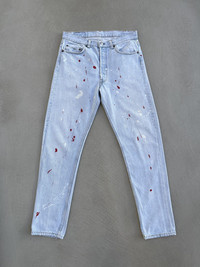 100% Authentic Levi's Paint Denim 1990s Crazy Details All sales are final. Check out other heat on my page!