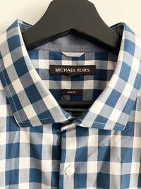 STEAL! 2000s Michael Kors Blue Plaid Flannel Shirt