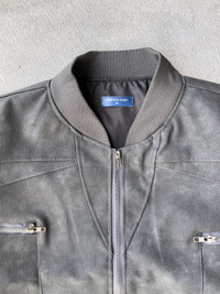 Vintage - STEAL! 2000s Suede Grey Bomber Jacket (L)