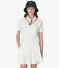 - Soft supple knitted fabric. - Straight cut. - Contrasting V neck. - A.P.C. Golf logo embroidered over the heart. Size Advice - Angelina is 5'8 tall and is wearing size S. Composition & Material - 37% acrylic. 37% cotton. 26% polyester. - Made in South Korea. - Dry clean only.