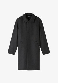 - Italian wool. - Straight cut with a slightly loose fit. - Mid-thigh length. - Topstitched classic collar. - Five buttons four are hidden. - Single vent. Size Advice - Matthieu is 6'2 tall and is wearing size M. Composition & Material - 70% wool. 15% polyester. 10% polyamide. 5% other fibers. - Italian material. - Made in Bulgaria. - Dry clean only.