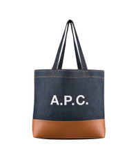 - Tote bag in Japanese canvas. - Two large handles to carry the bag by hand or on the shoulder. - Large panel in smooth leather at bottom of bag. - Reinforced base. - Interior zip pocket. - Large A.P.C. logo in front. - Caramel topstitching on the denim. Size Advice - Dimensions: 15.6 x 16.1 x 5.5. Composition & Material - 98% cotton. 2% polyurethane. - 100% cowhide leather. - Japanese and Spanish materials. - Made in Mauritius. Our commitments Through its RESPECT program A.P.C reduces (by implementing many practical measures to improve its environmental footprint) regulates (by respecting and enforcing its ethical responsibility on the part of its employees as well as its suppliers) and reuses (through its recycling vintage or quilts and butler programs for example).
