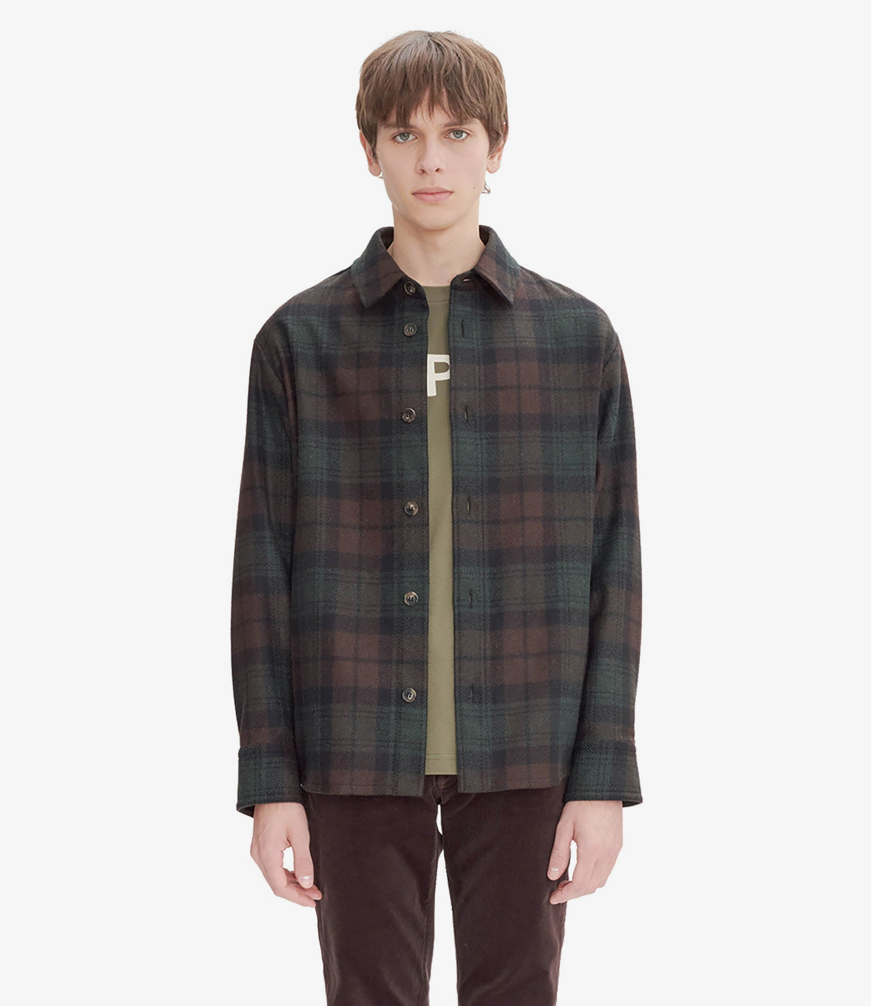 A.P.C. Men's shirt. - Straight cut. - Classic collar. - Buttoned cuffs. - Corozo buttons. Size Advice - Till is 6'2 tall and is wearing size M. Composition & Material - 69% wool. 26% polyamide. 5% other fibers. - Italian material. - Made in Morocco. - Dry clean only. Our commitments Through its RESPECT program A.P.C reduces (by implementing many practical measures to improve its environmental footprint) regulates (by respecting and enforcing its ethical responsibility on the part of its employees as well as its suppliers) and reuses (through its recycling vintage or quilts and butler programs for example).