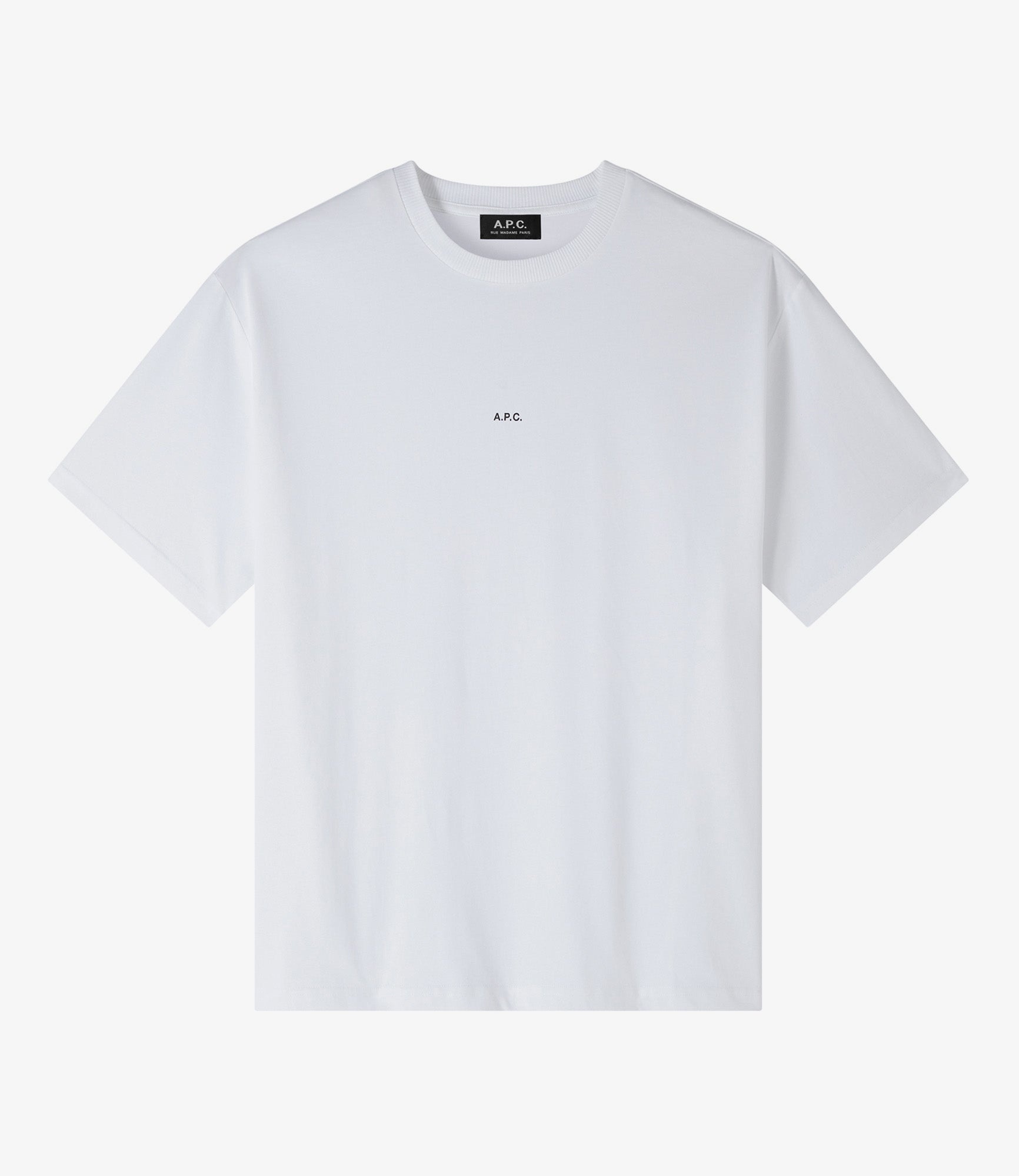 A.P.C. Men's t-shirt. - Wide boxy fit. Size down 1 if between sizes or regular fit is desired. - Loose fit. - Sloping shoulders and wide sleeves. - Black A.P.C. micrologo centered in front. - 100% organic cotton. Size Advice - Model is 6'1 tall and is wearing size M. - Wide boxy fit. Size down 1 if between sizes or regular fit is desired. Composition & Material - 100% cotton. - Portuguese material. - Made in Portugal. - Machine wash cold (86°F) inside-out.