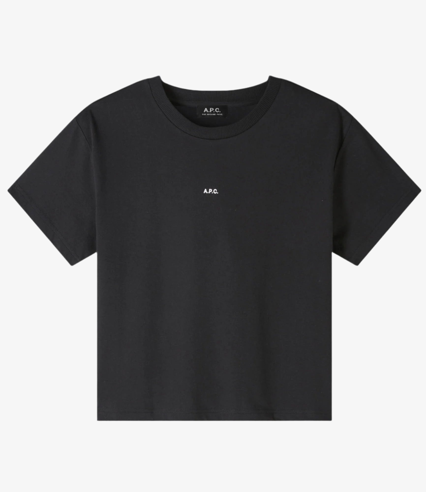 - Cropped and boxy cut with a loose fit. - Crew neck. - White micro A.P.C. logo over the chest. - 100% organic cotton. Size Advice - Model is 5'10 wearing size S. Composition & Material - 100% cotton. - Portuguese material. - Made in Portugal. - Machine wash cold (86°F) inside-out.