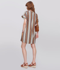 - Loose fit. - Above-knee length. - Round neckline. - Short wide sleeves. - 51% recycled cotton. - Same fabric also available in: Agnes jacket u0026amp; Malorie top Size Advice - Matilda is 5'9 tall and is wearing size 36. - This item sizes normally. We recommend that you select your usual size. Composition & Material - 100% cotton. - Italian material. - Made in Tunisia. - Machine wash cold (86°F) inside-out.