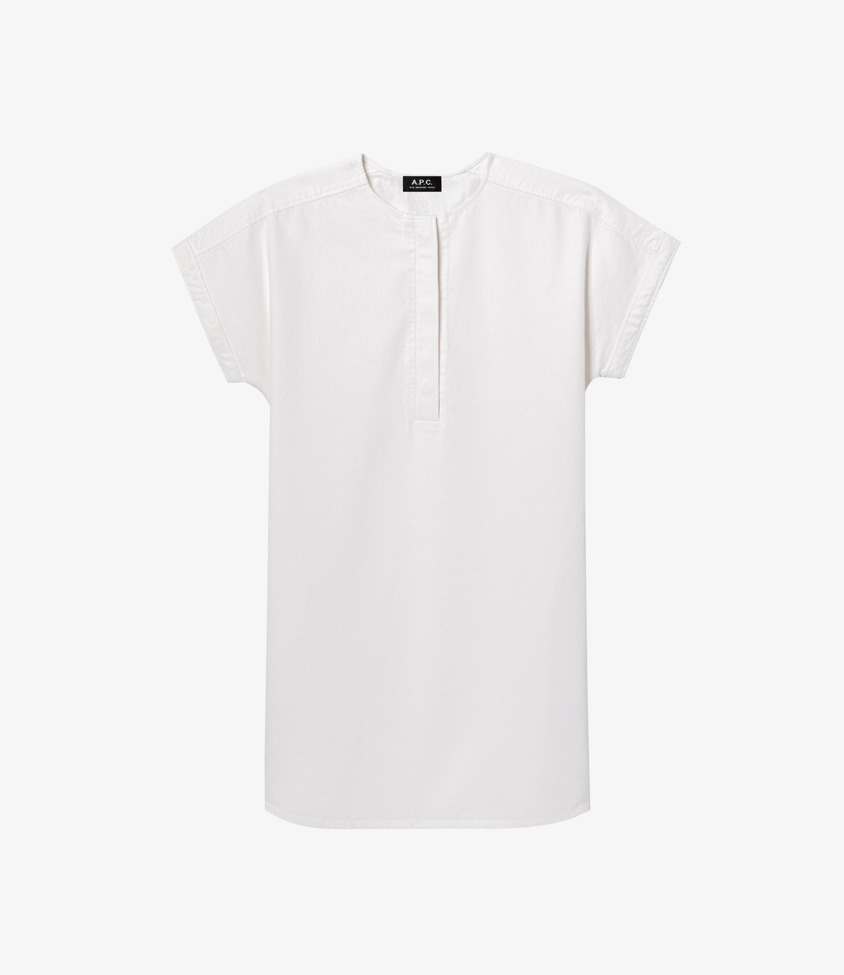 - Loose fit. - Above-knee length. - Round neckline with hidden button closure. - Short wide sleeves. - 100% organic cotton. - Same fabric also available in: Nikkie jacket Tressie pants Mini-skirt and Sidney pants Size Advice - Matilda is 5'9 tall and is wearing size 36. - This item sizes normally. We recommend that you select your usual size. Composition & Material - 100% cotton. - Spanish material. - Made in Tunisia. - Machine wash cold (86°F) inside-out.