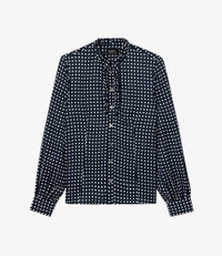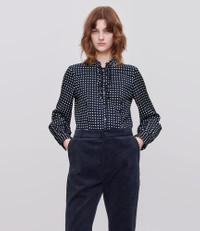 - Straight cut. - Ruffled collar and ruffles around top buttons. - Pearlescent buttons. Size Advice - Matilda is 5'9 tall and is wearing size 36. - This item sizes normally. We recommend that you select your usual size. Composition & Material - 100% viscose. - Italian material. - Made in Tunisia. - Dry clean only.