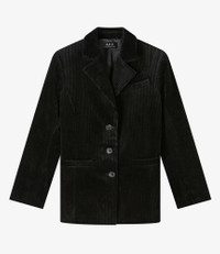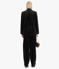 - Compact material. - Loose cropped and boxy cut. - Felt-lined suit collar. - Closes with three faux horn buttons. - Two side pockets and one over the heart. - Back vent. - Viscose lining. - Wear with the River F pants. Size Advice - Ireen is 5'10 tall and is wearing size 36. Composition & Material - 98% cotton. 2% elastane. - Italian material. - Made in Bulgaria. - Dry clean only.