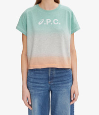 A.P.C. x Asics t-shirt. - Cropped and boxy cut with a loose fit. - Crew neck. - White A.P.C. and Asics logo at the center. - 100% organic cotton. Size Advice - Kelsey is 5'10 tall and is wearing size S. Composition & Material - 100% cotton. - Portuguese material. - Made in Portugal. - Machine wash cold (86°F) inside-out.