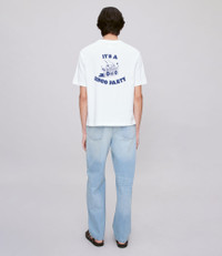 - Oversized cut. - Crew neck. - A.P.C. logo and boombox printed over the heart and on the back. - This garment is GOTS-certified which guarantees the organic origin of this clothing and the compliance with strict social and environmental criteria throughout the production chain. - GOTS-certified product (No. 214416/EGL) - Organic textile. Size Advice - Grace is 5'10 tall and is wearing size XS. - Leo is 6'1 tall and is wearing size M. - For women we recommend that you order one size smaller than usual. - For others this item sizes normally. We recommend that you select your usual size. Composition & Material - 100% cotton. - Portuguese material. - Made in Portugal. - Machine wash cold (86°F) inside-out.