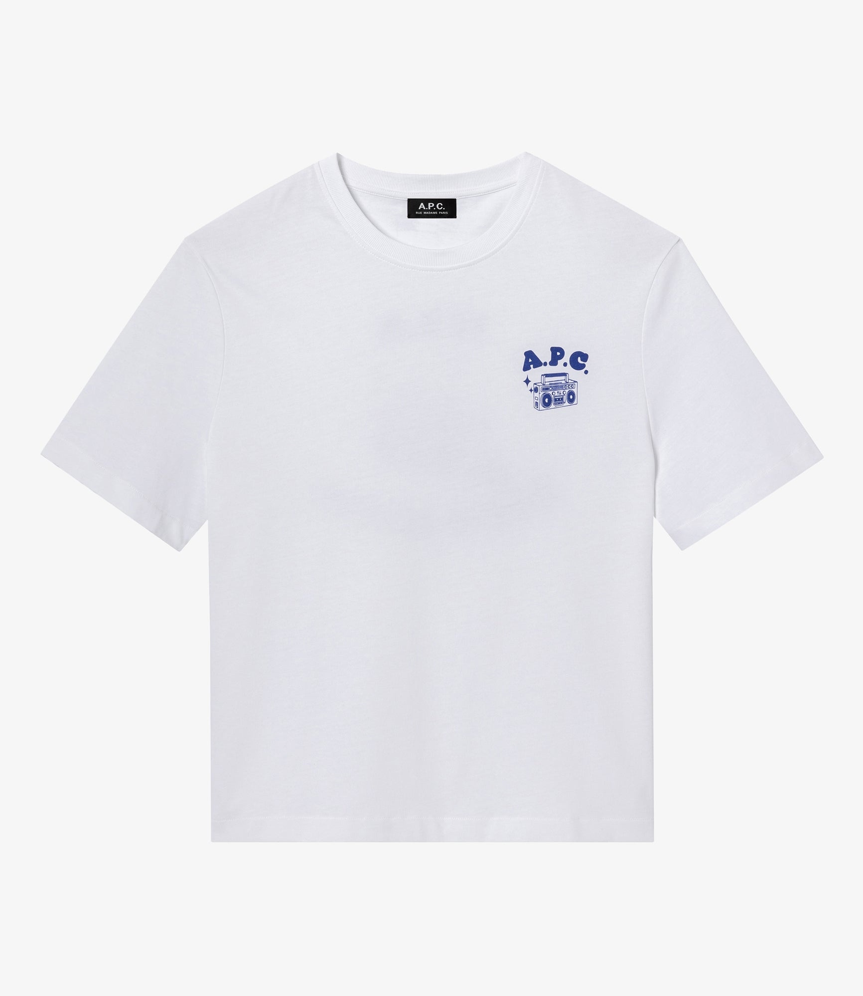- Oversized cut. - Crew neck. - A.P.C. logo and boombox printed over the heart and on the back. - This garment is GOTS-certified which guarantees the organic origin of this clothing and the compliance with strict social and environmental criteria throughout the production chain. - GOTS-certified product (No. 214416/EGL) - Organic textile. Size Advice - Grace is 5'10 tall and is wearing size XS. - Leo is 6'1 tall and is wearing size M. - For women we recommend that you order one size smaller than usual. - For others this item sizes normally. We recommend that you select your usual size. Composition & Material - 100% cotton. - Portuguese material. - Made in Portugal. - Machine wash cold (86°F) inside-out.