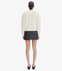 - Soft warm and thick material. - Boxy cut. - Crew neck. - Sloping shoulders. - Contrasting A.P.C. logo at lower left. - Six tone-on-tone corozo buttons. Size Advice - Julie is 5'9 tall and is wearing size S. Composition & Material - 100% wool. - Made in China. - Machine wash delicate cycle or by hand.