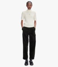- Soft thick material. - Straight loose cut. - Mid-rise. - Two diagonal pockets in front. - Two back pockets and two on the side of the legs. - One hammer pocket on the left leg. - Zip fly. Size Advice - Model is 5'9 tall and is wearing size 27. - For women we recommend that you order one size smaller than usual. Composition & Material - 98% cotton. 2% elastane. - Italian material. - Made in Bulgaria. - Dry clean only.