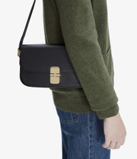 A.P.C. Women's bag. - Adjustable leather shoulder strap. - Can be worn on the shoulder or across the chest. - Goldtone hardware clasp. - One interior pocket. - Embossed goldtone 'A.P.C. Rue Madame Paris' logo. Size Advice - Dimensions: 9.8 x 5.9 x 2 inches. - Strap: 10.2 and 13.8 inches. Composition & Material - 100% leather. - Spanish material. - Made in Morocco. - Care instructions: wipe with a soft dry cloth.