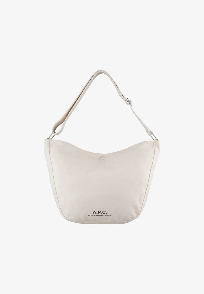 - Unisex piece. - Durable material. - One large compartment with a snap button. - One inside pocket with the A.P.C. logo. - A.P.C. rue Madame Paris logo printed on the front of the bag. - Adjustable shoulder strap to wear the bag on the shoulder or across the chest. - 100% recycled material including 60% cotton. Size Advice - Dimensions: 9.3 x 9.4 x 4.7. Composition & Material - 60% cotton. 40% polyester. - Made in China.