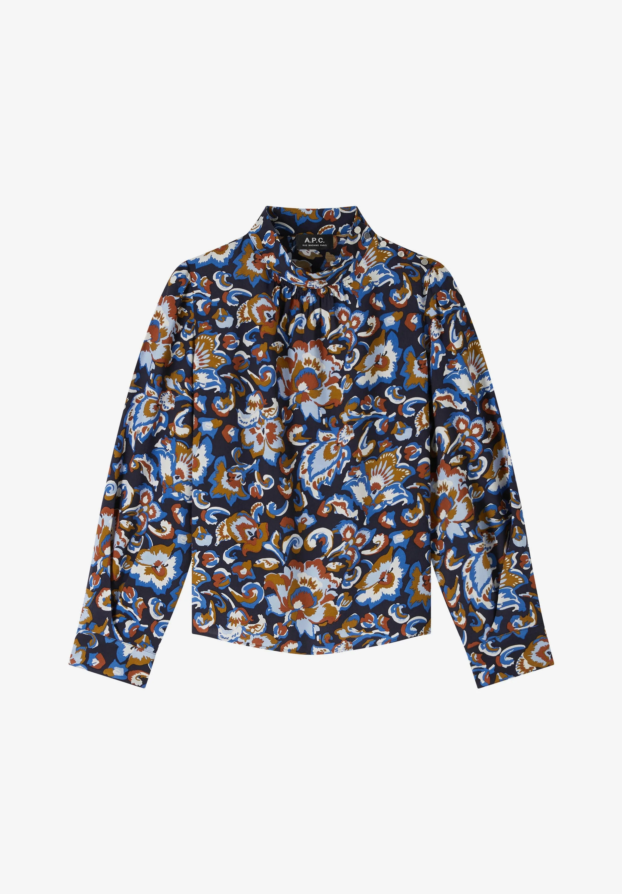 - Light pleasant material. - Straight cut. - High collar. - Slightly puffy shoulders. - Buttoned cuffs. Size Advice - Chloe is 5'7 tall and is wearing size 36. Composition & Material - 100% viscose. - Italian material. - Made in Tunisia. - Dry clean only.
