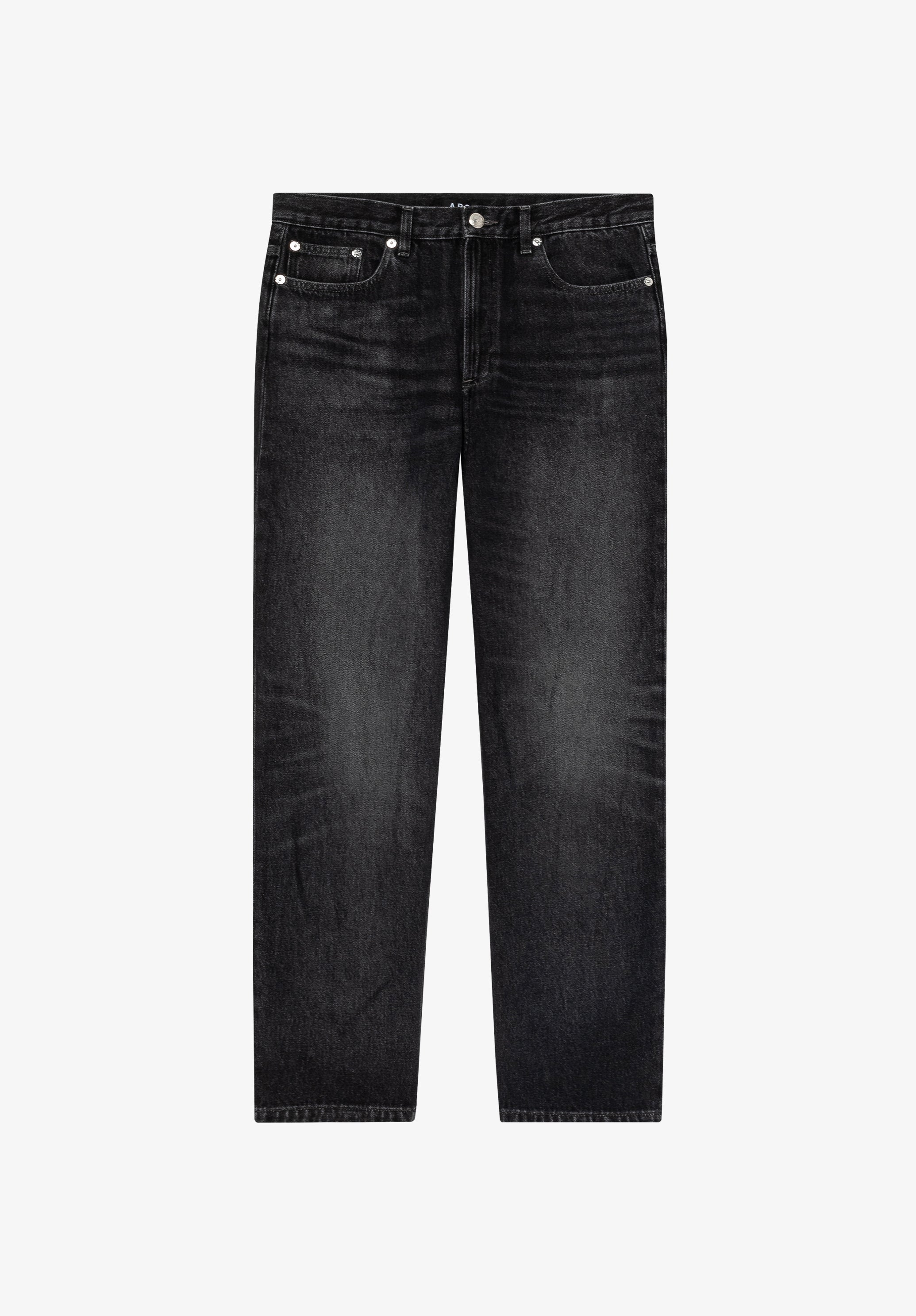 - A.P.C. Butler-style stonewashed denim. - Straight wide leg slightly fitted at the ankle. - Envelops the hips. - Zip fly. - Tone-on-tone topstitching. Size Advice - Indy is 6'1 tall and is wearing size 30. Composition & Material - 100% cotton. - Made in Egypt. - Do not dry clean. - Machine wash cold (86°F) inside-out. - Gentle spin cycle. - Do not tumble dry. - The jeans may appear shrunken after washing but they return to their original shape when worn.
