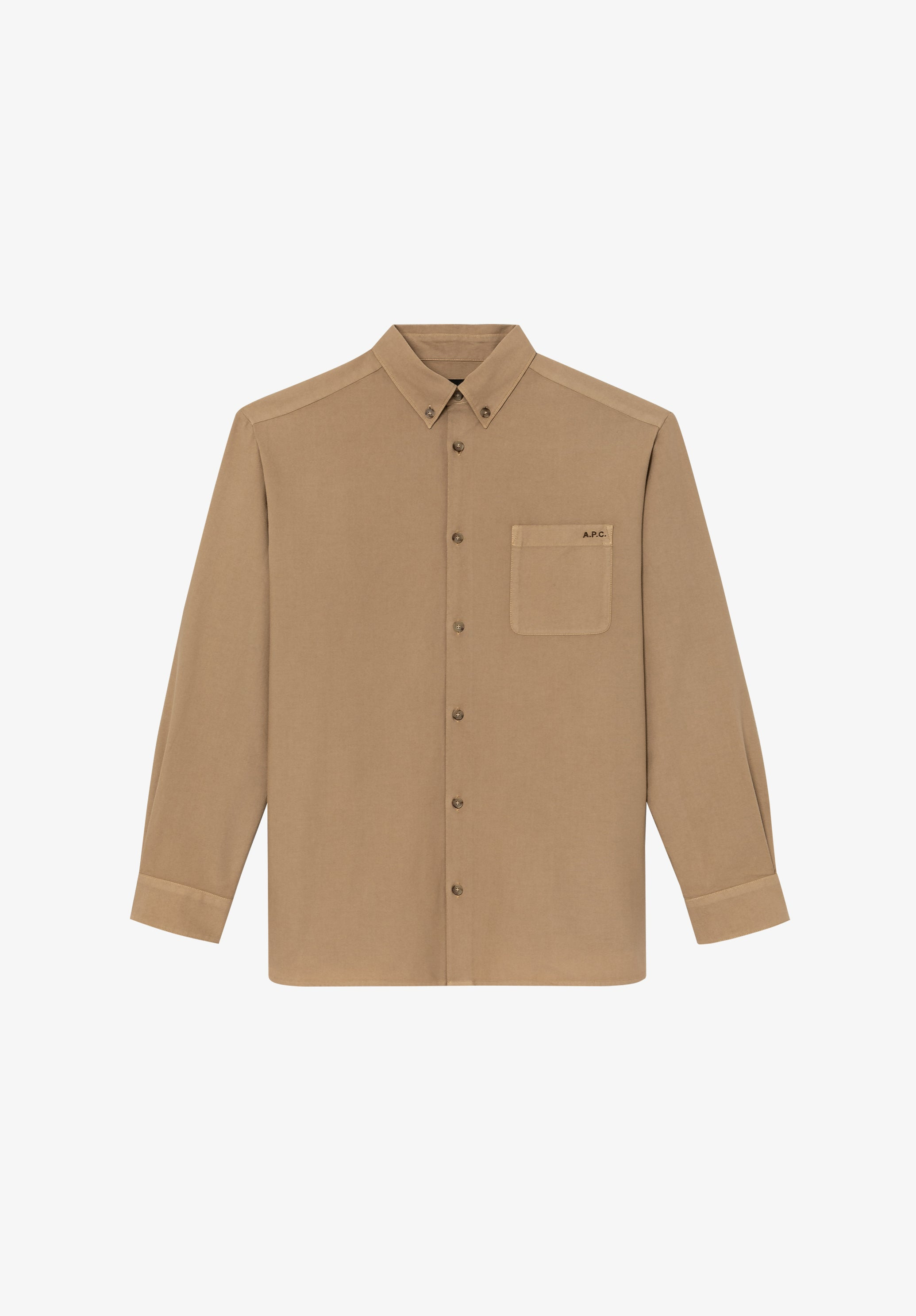 - Soft breathable material. - Straight cut with a slightly loose fit. - Button-down collar. - One pocket over the heart embroidered with a contrasting A.P.C. logo. - Faux horn buttons. - 100% organic cotton. Size Advice - Adam is 6'1 tall and is wearing size M. Composition & Material - 100% cotton. - Portuguese material. - Made in Tunisia. - Machine wash cold (86°F) inside-out.