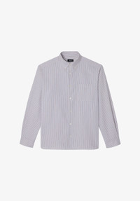 - Soft breathable material. - Straight cut with a slightly loose fit. - Button-down collar. - One pocket over the heart embroidered with a contrasting A.P.C. logo. - Faux horn buttons. - 100% organic cotton. Size Advice - Adam is 6'1 tall and is wearing size M. Composition & Material - 100% cotton. - Italian material. - Made in Tunisia. - Machine wash cold (86°F) inside-out.