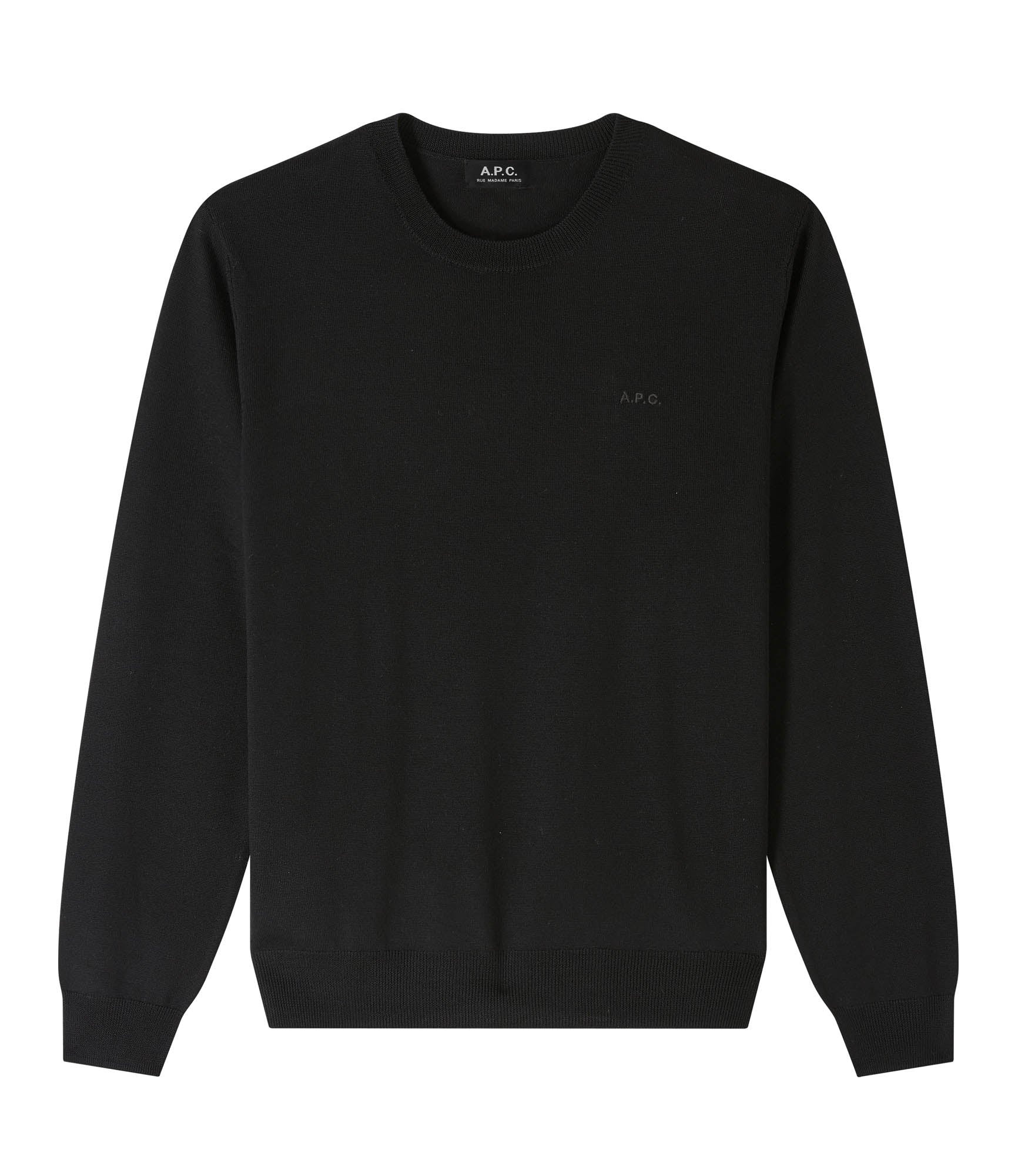 A.P.C. Men's sweater. - Soft lightweight and warm Italian material. - Straight cut. - Crew neck. - Tone-on-tone A.P.C. logo embroidered over the heart. Size Advice - Vincent is 6'1 tall and is wearing size M. Composition & Material - 100% wool. - Italian material. - Made in Italy. - Hand wash or delicate cycle.