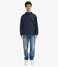 A.P.C. x Asics jacket. - Straight cut. - Crew neck adjusts with two tone-on-tone stoppers and a visor hood. - Waterproof two-way zip closure. - Multicolored A.P.C. and Asics logo over the heart. - Two side pockets. - Sleeve elasticated at wrist. - Wear with the Haze pants. Size Advice - Leo is 6'2 tall and is wearing size M. Composition & Material - 100% polyester. - Made in China. - Machine wash cold (86°F) inside-out.