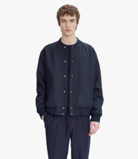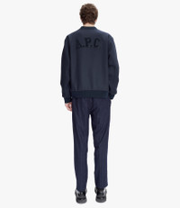 - Unisex piece. - Warm compact material. - Straight cut. - Soft collar. - A.P.C. chenille patch on the back. - Varnished snap closure. - Two side pockets. Size Advice - Leo is 6'2 tall and is wearing size M. Composition & Material - 75% wool. 25% polyester. - Italian material. - Made in Romania. - Dry clean only.