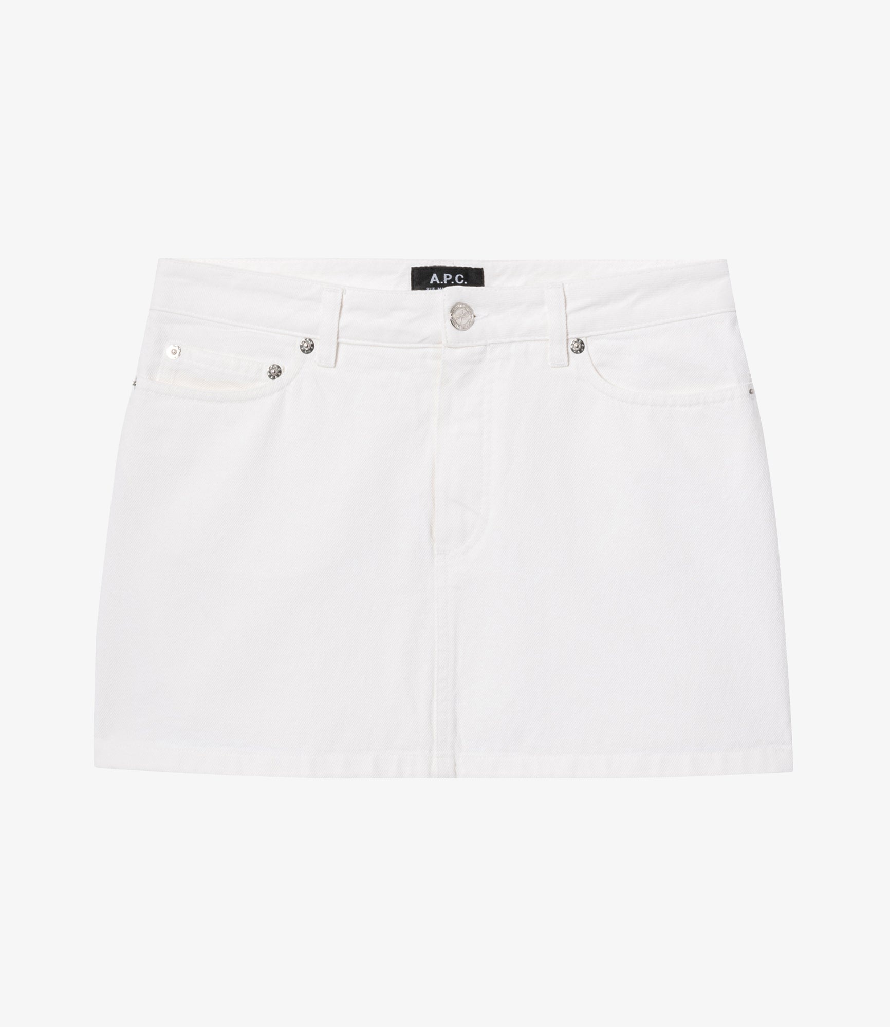 - Very short cut slightly flared. - High rise. - Zip fly. Button at waist engraved A.P.C. rue Madame pres du Luxembourg. - Tone-on-tone topstitching. - 100% organic cotton. Size Advice - Grace is 5'10 tall and is wearing size 36. - This item sizes normally. We recommend that you select your usual size. Composition & Material - 100% cotton. - Spanish material. - Made in Tunisia. - Machine wash cold (86°F) inside-out.