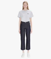 A.P.C. Women's jeans. - Fabric is stiffer than usual washed denim. Will conform to body shape once worn in. Size up 1 if a more comfortable fit is desired. - High rise. - Envelops the hips. - Straight leg. - 7/8 length. - Zip fly. Size Advice - Sofi is 5'10 tall and is wearing size 26. - Fabric is stiffer than usual washed denim. Will conform to body shape once worn in. Size up 1 if a more comfortable fit is desired. Composition & Material - 98% cotton. 2% polyurethane. - Japanese material. - Made in Vietnam. - Do not dry clean. - Machine wash cold (86°F) inside-out. - Gentle spin cycle. - Do not tumble dry. - The jeans may appear shrunken after washing but they return to their original shape when worn.