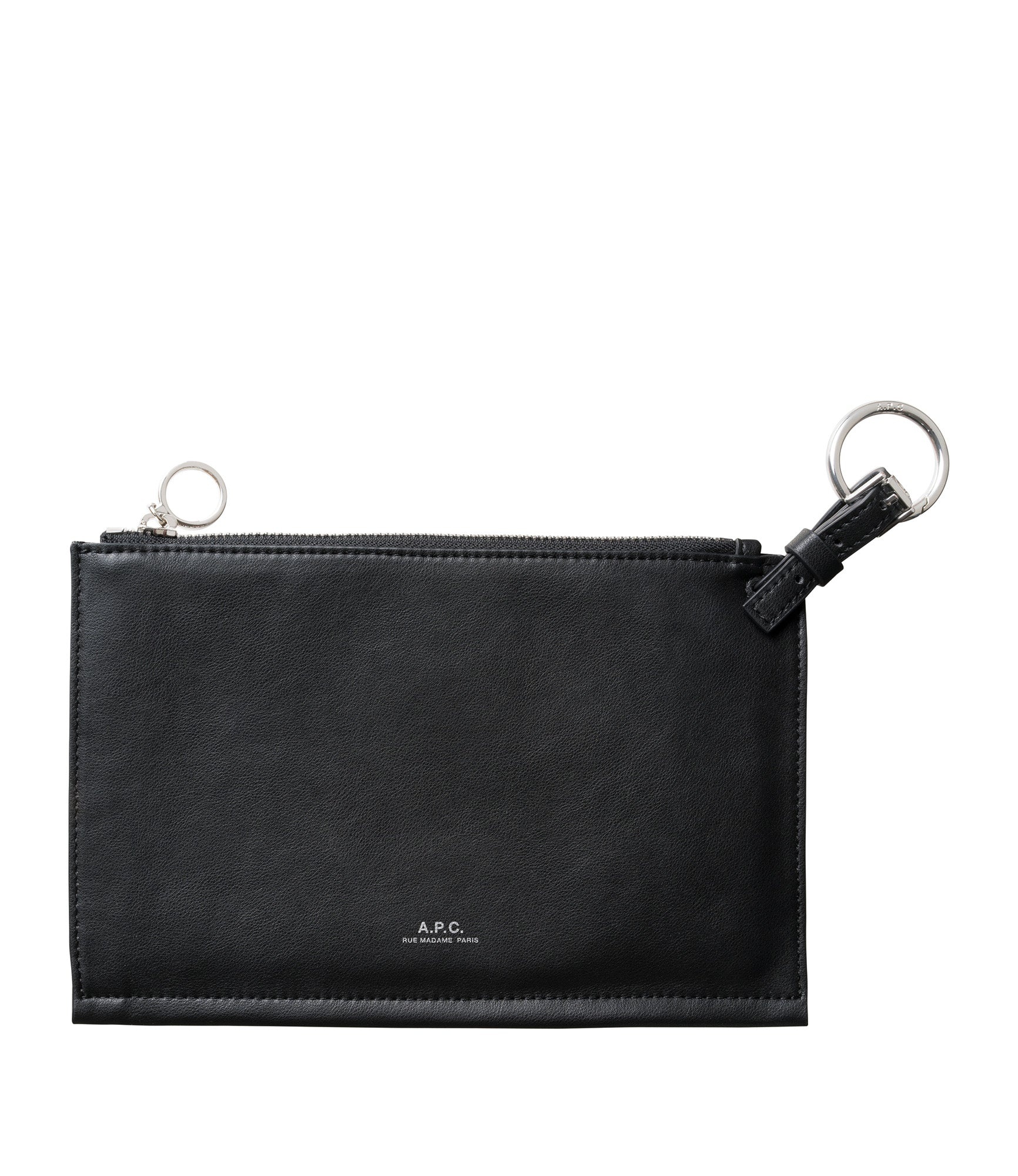 A.P.C. Men's pouch. - Zip-up compartment. - Strap with metal buckle engraved A.P.C. - Embossed silvertone 'A.P.C. Rue Madame Paris' logo. Size Advice - Dimensions: 9.4 x 6.1. Composition & Material - 60% polyurethane. 40% polyester. - Made in China. - Care instructions: wipe with a soft dry cloth.