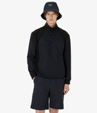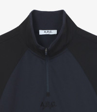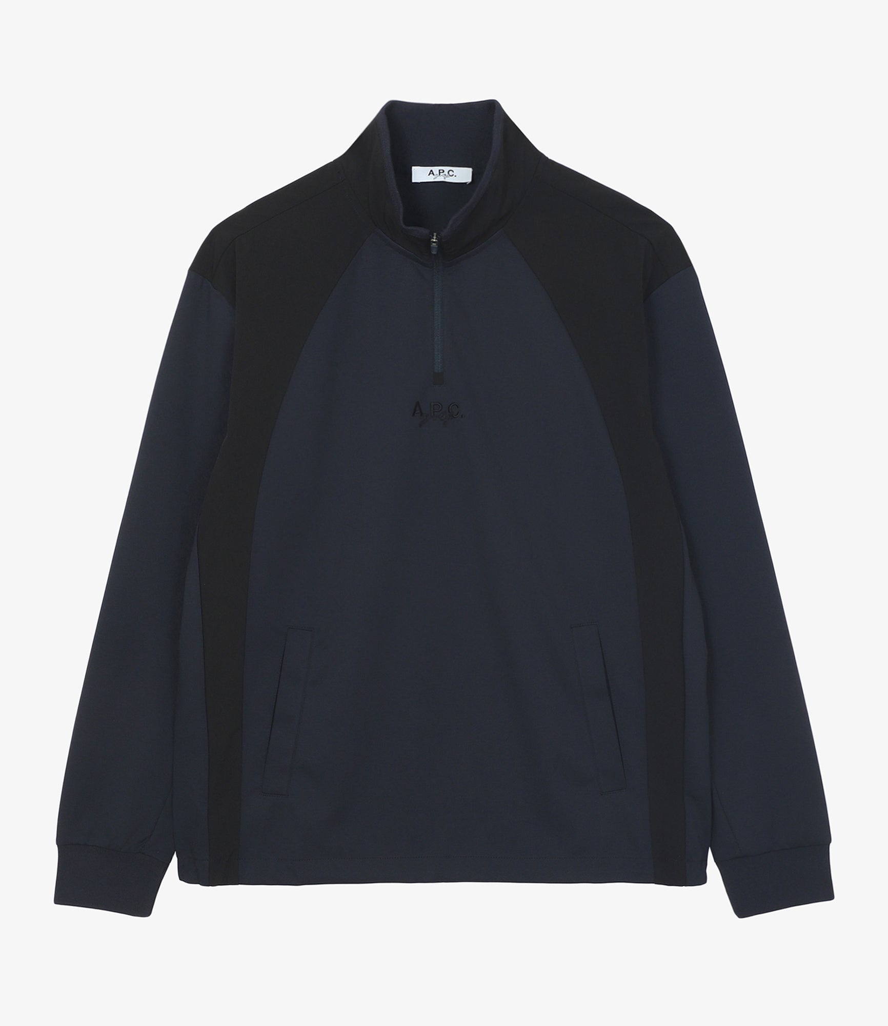- Breathable material. - Straight cut. - Zip-up high collar. - Raglan sleeves. - Tone-on-tone A.P.C. Golf logo embroidered in the center. - Two side pockets. Size Advice - Igor is 6'5 tall and is wearing size M. Composition & Material - 53% polyester. 47% cotton. - Made in South Korea. - Machine wash cold (86°F) inside-out.