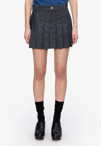 - Japanese denim material. - Very short cut slightly flared. - Mid-rise. - Zip fly. - Caramel topstitching. Size Advice null Composition & Material - 98% cotton. 2% polyurethane. - Japanese material. - Made in Viet Nam. - Machine wash cold (86°F) inside-out.