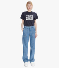 - Straight cut envelops the hips. - Rather high waist. - Wide long leg. - Zip fly. - Topstitched pocket outlines. - Large topstitched hem. - Caramel topstitching. - 100% organic cotton. Size Advice - Ireen is 5'10 tall and is wearing size 26. Composition & Material - 100% cotton. - Italian material. - Made in Portugal. - Do not dry clean. - Machine wash cold (86°F) inside-out. - Gentle spin cycle. - Do not tumble dry. - The jeans may appear shrunken after washing but they return to their original shape when worn.