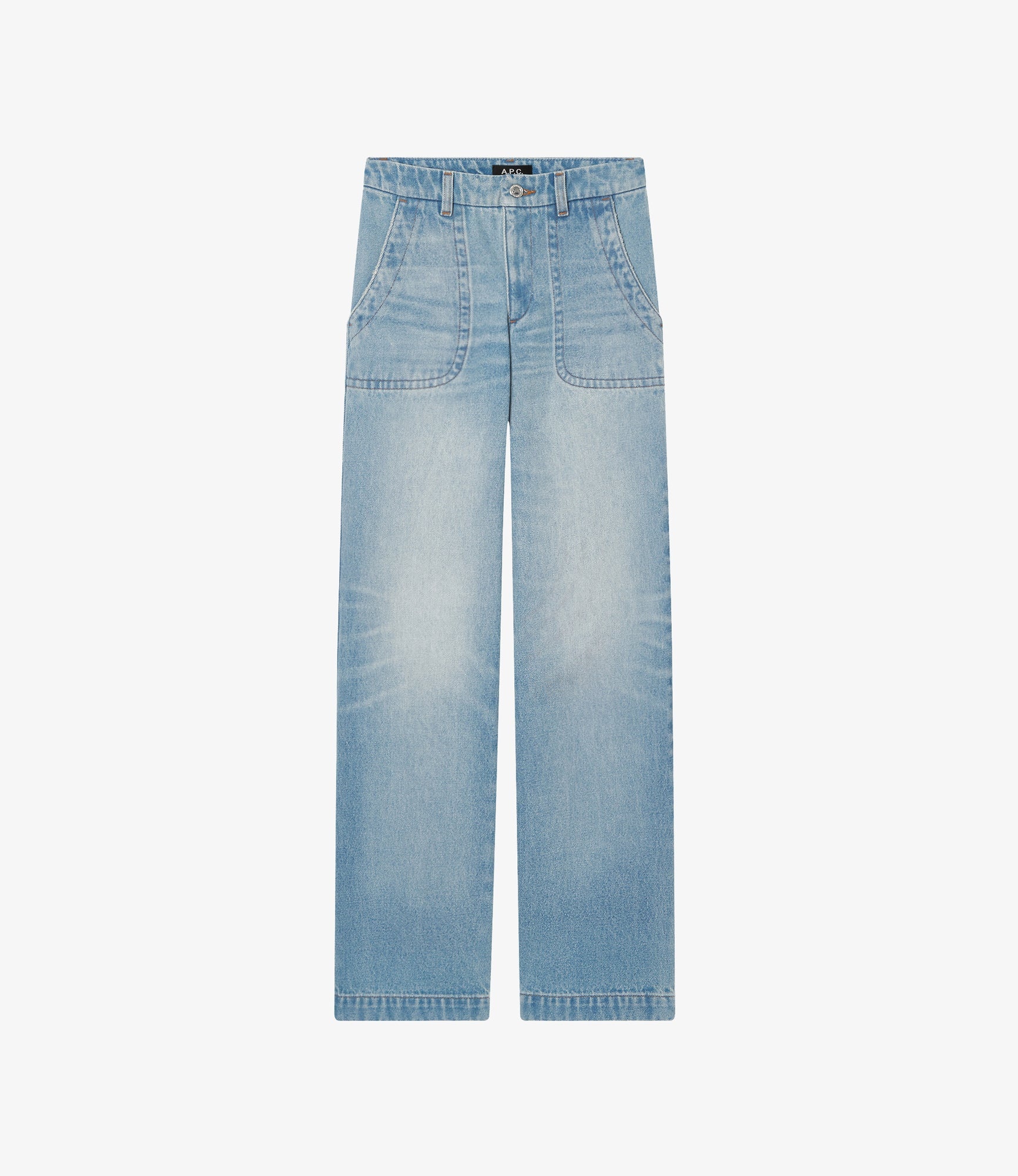 - Soft material. - Straight cut envelops the hips. - Rather high waist. - Wide long leg. - Zip fly. - Topstitched pocket outlines. - Large topstitched hem. - Caramel topstitching. - 100% recycled cotton. Size Advice - Matilda is 5'9 tall and is wearing size 26. - This item sizes normally. We recommend that you select your usual size. Composition & Material - 100% cotton. - Made in Egypt. - Do not dry clean. - Machine wash cold (86°F) inside-out. - Gentle spin cycle. - Do not tumble dry. - The jeans may appear shrunken after washing but they return to their original shape when worn.