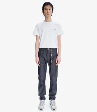 A.P.C. Men's jean. - Fits true to size. Good fit for athletic thighs. - If you own a Petit Standard or Petit New Standard in the same raw denim fabric you may need to size down 1 from those fits as the Standard fit is more roomy. - Japanese raw denim. - Very stiff fabric that wears in over time. - Straight rather loose leg. - Rather high rise. - Five pockets. - Button fly. - Button at waist is engraved 'A.P.C. rue Madame pres du Luxembourg.' - Engraved rivets. - Caramel topstitching. Size Advice - Zang is 5'9 tall and is wearing size 30. - Fits true to size. Good fit for athletic thighs. - If you own a Petit Standard or Petit New Standard in the same raw denim fabric you may need to size down 1 from those fits as the Standard fit is more roomy. Composition & Material - 100% cotton. - Japanese material. - Made in Vietnam. - Machine wash 30°C inside-out. - Spin dry at minimum speed. - Do not tumble dry. - The jeans may appear to shrink after washing but will regain their shape when worn.