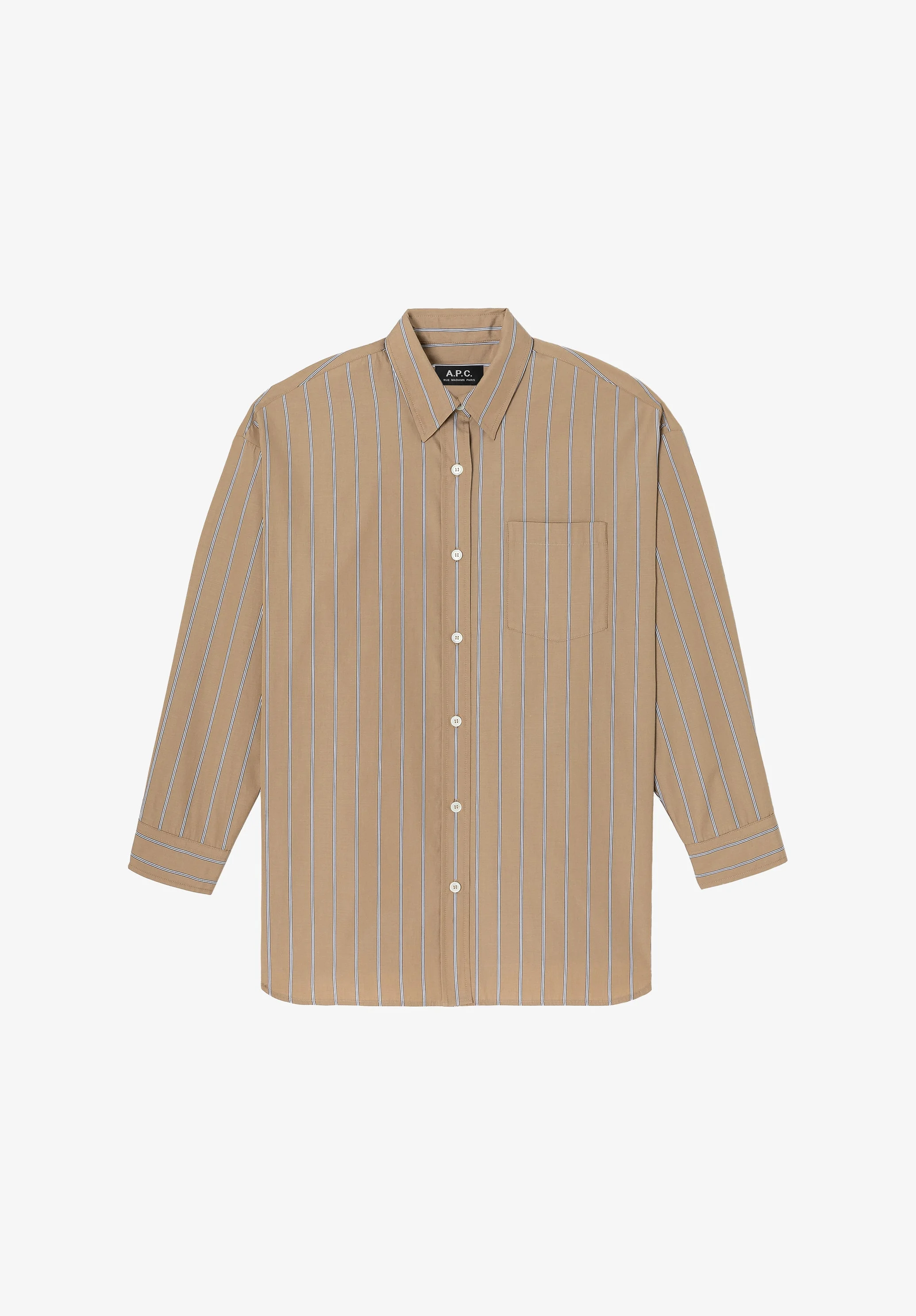 - Straight cut. - Classic collar. - One pocket over the heart. - Mother-of-pearl buttons engraved A.P.C. Size Advice - Simone is 5'10 tall and is wearing size 36. Composition & Material - 100% cotton. - Italian material. - Made in Tunisia. - Machine wash cold (86°F) inside-out.