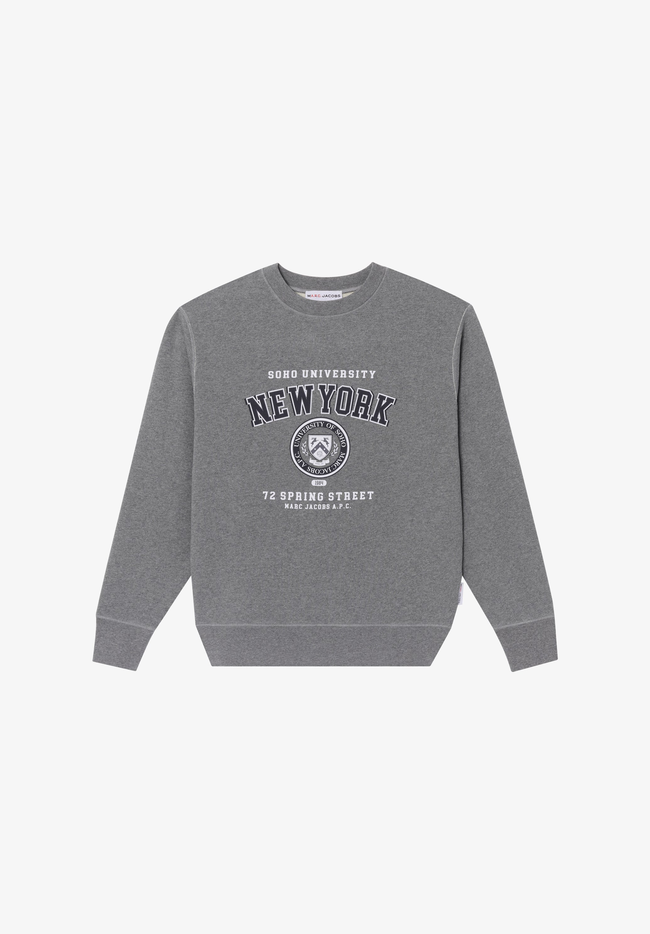 A.P.C. x Marc Jacobs interaction sweatshirt. - Straight loose-fitting cut. - Crew neck. - Marc Jacobs University New York logo on front. - Dropped shoulders. Size Advice - Adam is 185 cm tall and is wearing size M. - This item runs true to size. We recommend that you select your usual size. Composition & Material - 100% cotton. - Portuguese material. - Made in Portugal. - Machine wash cold (30°C) inside-out.