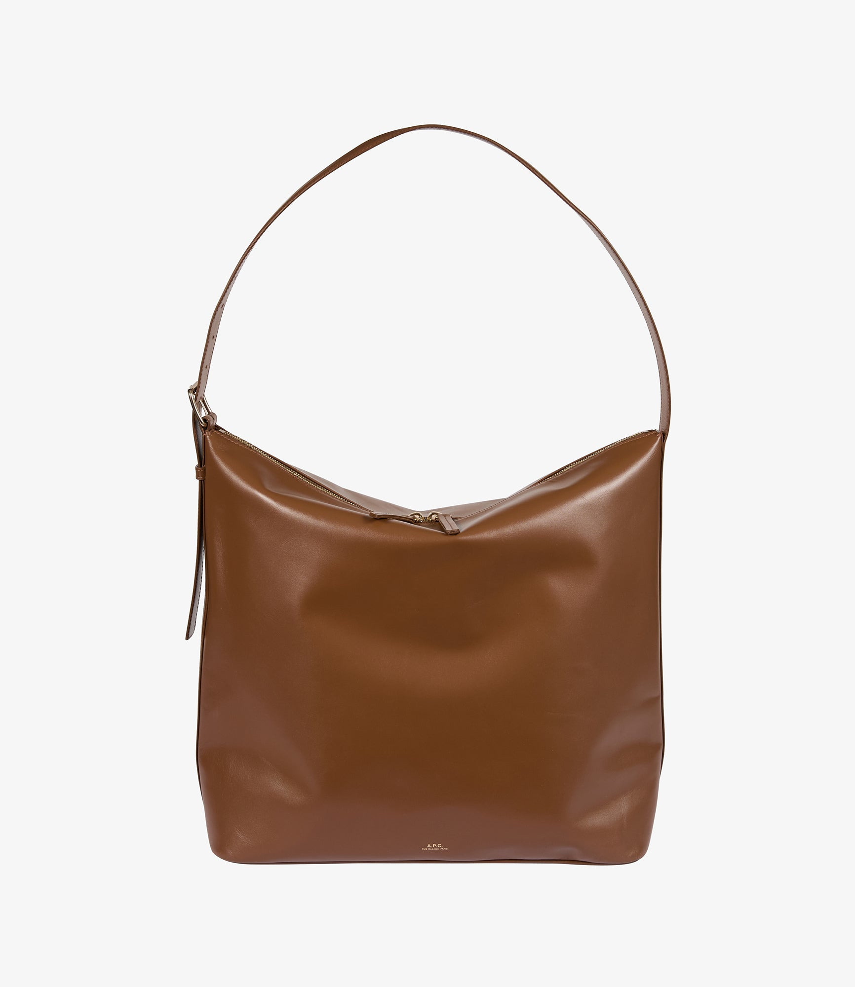 A.P.C. Women's bag. - Smooth leather handle. - One large shoulder strap adjusts with a goldtone metal buckle to carry the bag on the shoulder or by hand. - Large two-way zipper and leather zip pulls. - One inside pocket. - Cotton lining. - Embossed goldtone A.P.C. Rue Madame Paris logo. Size Advice - Cotton lining. - Dimensions: 40 x 35 x 12.5 cm. - Large version of the Vera bag. Composition & Material - 100% cowhide leather. - Spanish material. - Made in Portugal. - Care instructions: wipe with a soft dry cloth. - Avoid poor weather conditions which can potentially damage the leather.