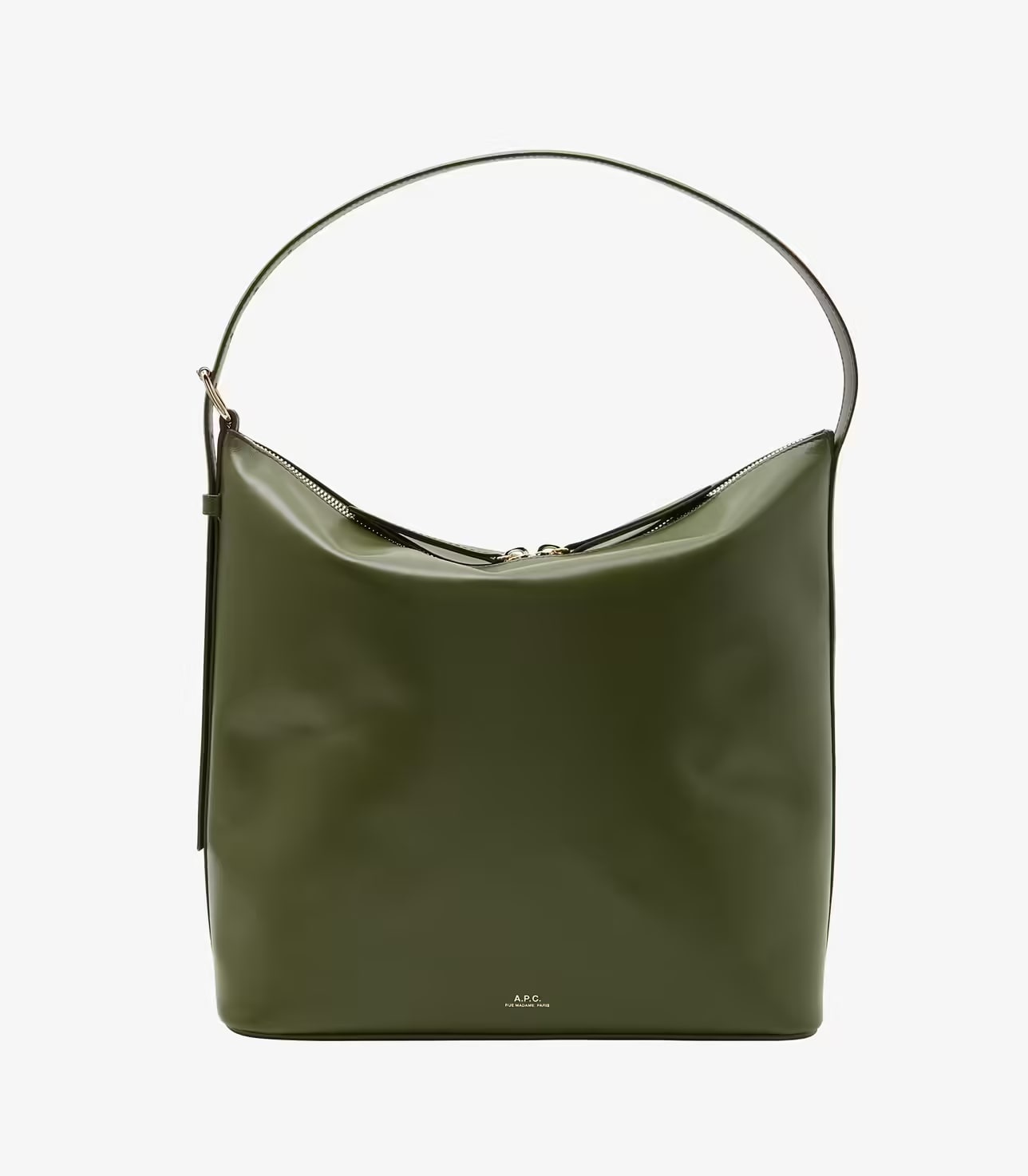 A.P.C. Women's bag. - Smooth leather handle. - One large shoulder strap adjusts with a goldtone metal buckle to carry the bag on the shoulder or by hand. - Large two-way zipper and leather zip pulls. - One inside pocket. - Cotton lining. - Embossed goldtone A.P.C. Rue Madame Paris logo. Size Advice - Cotton lining. - Dimensions: 40 x 35 x 12.5 cm. - Large version of the Vera bag. Composition & Material - 100% cowhide leather. - Spanish material. - Made in Portugal. - Care instructions: wipe with a soft dry cloth. - Avoid poor weather conditions which can potentially damage the leather.