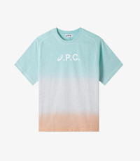 A.P.C. x Asics t-shirt. - Straight cut with a loose fit. - Crew neck. - White A.P.C. and Asics logo at the center. - 100% organic cotton. Size Advice - Leo is 6'2 tall and is wearing size M. Composition & Material - 100% cotton. - Portuguese material. - Made in Portugal. - Machine wash cold (86°F) inside-out.