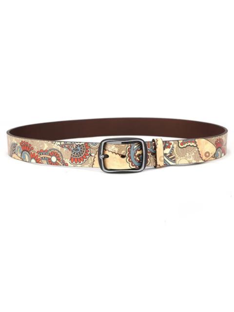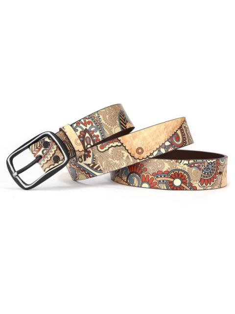 Archival Clothing - Beige colour cowhide unique graffiti print belt