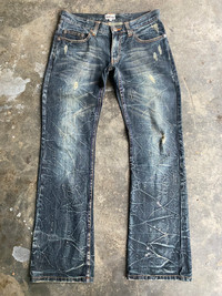Please take note this is used item. Read description carefully or can ask me anytime about this trouser. All item are Sold in as- Is condition. WAIST : 33 inches OUTSEAM : 41.5 inches INSEAM : 32.5 inches THIGH : 10.5 inches RISE : 8.5 inches LEG OPENING : 9.5 inches OVERALL CONDITION : Good vintage condition "Item are measured in inches while flying flat. To ensure a good fit try measuring a piece in your closet that you would like to fit similary. Colour may vary a bit due to innefficiency of camera and excessive lightning.
