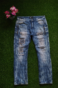 Japanese Brand - Stone Wash Distressed Design Jeans